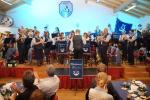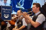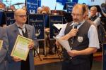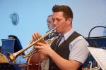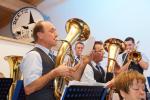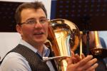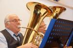 Zum Schluss des offiziellen Teils hatte Jörg Schramm leider die Aufgabe, seinen Tubisten und Vater, Günter Schramm, in den musikalischen Ruhestand zu schicken. In seinen Dankesworten hob Schramm sen. hervor, stets gerne musiziert zu haben, und verabschiedete sich natürlich nicht vom Publikum, ohne seine zukünftige Aushilfsbereitschaft preiszugeben.